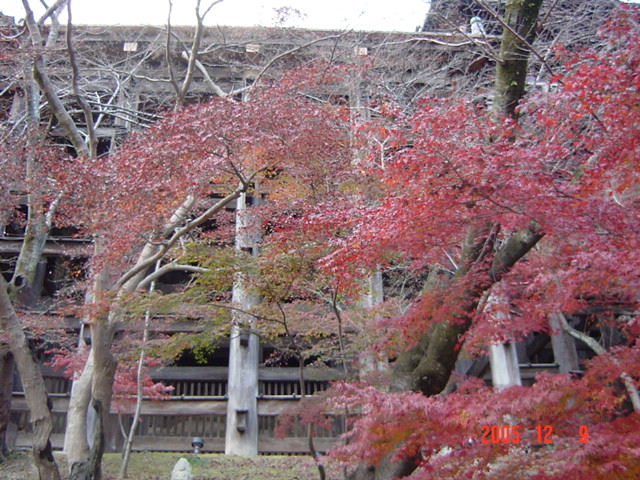もっと進むと「清水寺=清水の舞台」の眼下でした。ついつい写真をとり、ついでに未だ紅葉のところも撮影。