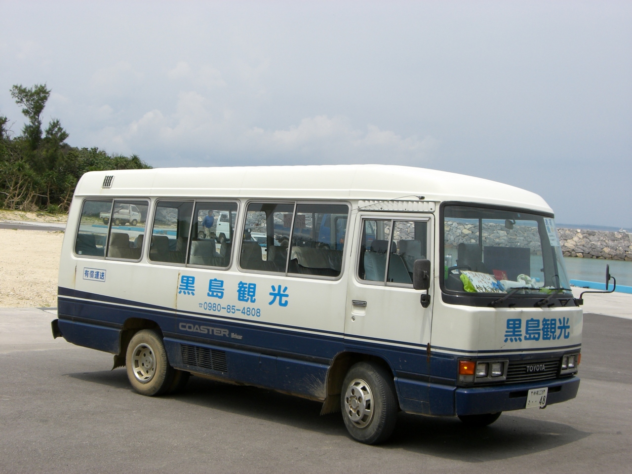 黒島は、石垣島から船で25分で着くので日帰りが出来ます。小さな島なので、移動はバスか、レンタサイクルになります。シュノーケルにおすすめの仲本海岸と港を片道300円で「黒島観光」のバスが出ています。帰りの船の時間の20分前にまた、海岸に迎えに来るのでそれにのればOKです。