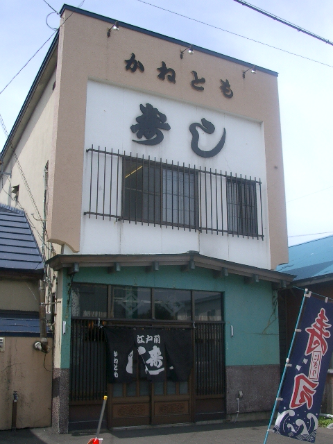 厚田村、国道沿いの元村役場を左折したところにある古い寿し屋です。客のほとんどが常連さんというかなりの人気店。開店したらすぐに行かないと平日でも結構待ちます。