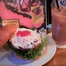 背の高い大きなハンバーガーで、がぶりと食べる豪快さがなんとも言えません。