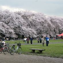 桜の季節は特にすばらしく、お花見客が沢山です。
