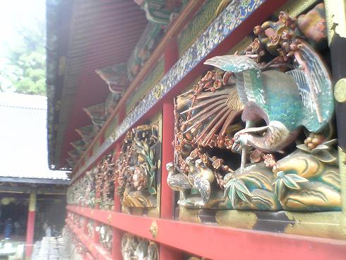 陽明門から左右にのびている羽目板にも豪華な彫刻が施されています。