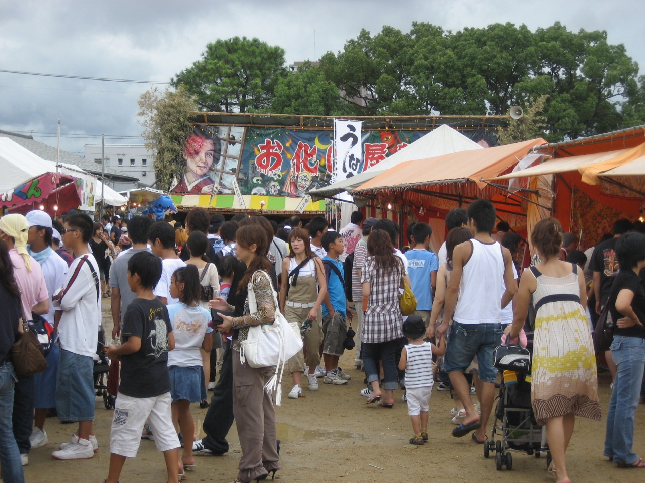 福岡市で最大の出店が出ていると思われる筥崎宮でのお祭り「放生会」です。初めて来た人は、凄い人手に驚くでしょう。何と出店で、お化け屋敷もあります。