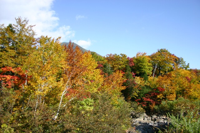 八甲田周辺は、東北地方の中でも早くから紅葉が始まります。八甲田の山麓は、赤や黄色のきれいな紅葉の林が広がります。