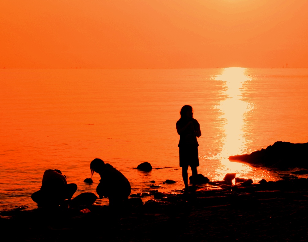 朝日に照らされる渚・打ち寄せる波は大変美しい。