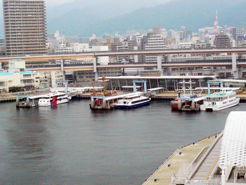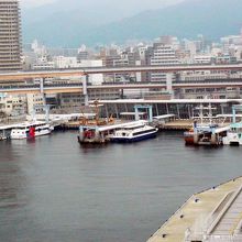 中突堤中央ターミナル前にはカッコいいのやレトロなの等色々な遊覧船が並んでいます。