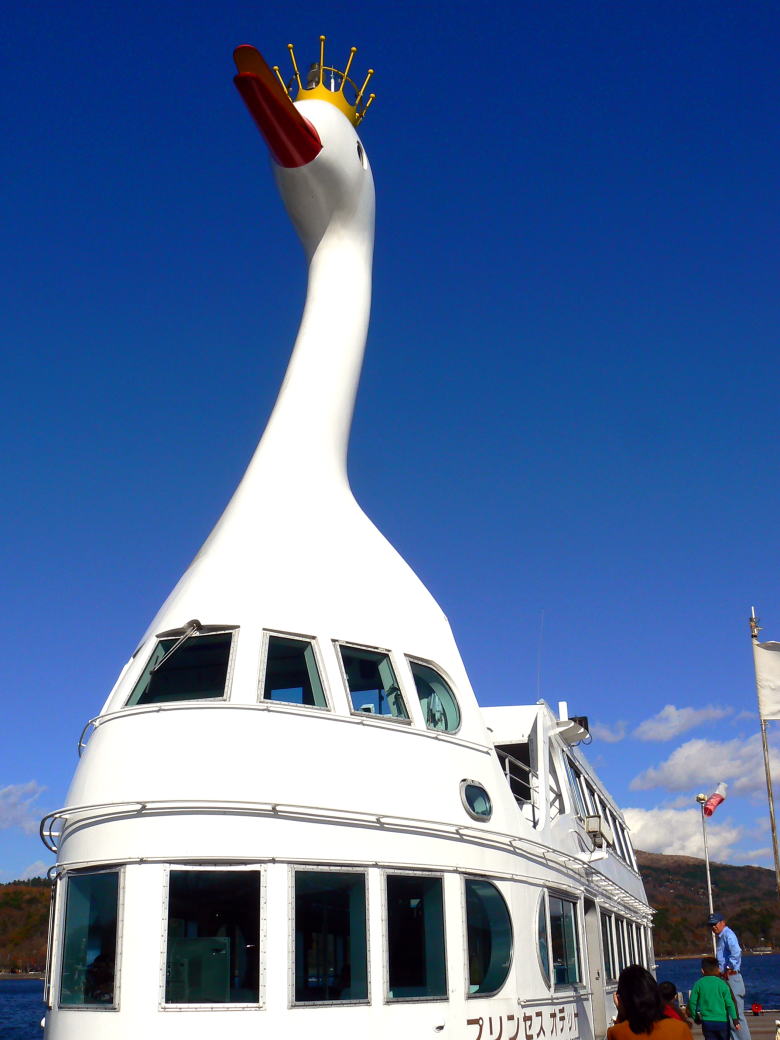白鳥型の遊覧船プリンセス・オデット号で山中湖1周35分でクルージング