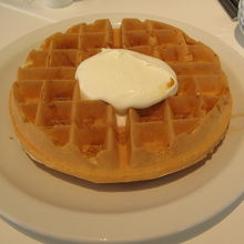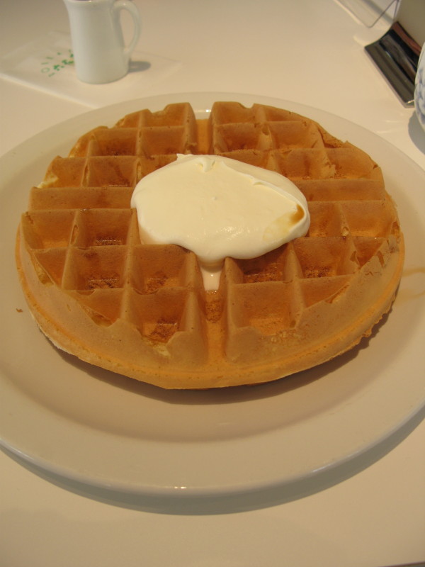 ワッフルのメープルシロップと生クリーム添えはあまりにも軽く、豚丼をお昼に食べたばかりのはずの私のお腹にあっという間に消えました。でもホットケーキもおいしそうだったなぁ…(食べ過ぎだよ>自分)