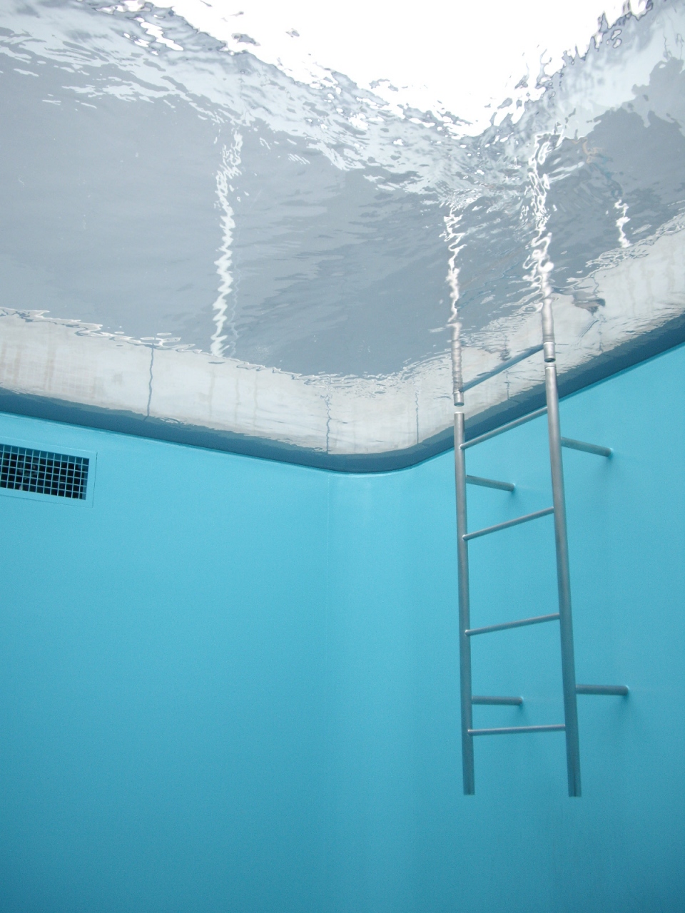 でもこれはきっと大人も子供も思わずワクワクする作品です。外から見ると、まるでいっぱいの水が張られているようですが、実は透明のガラスの上に深さ約10cmの水が張られているだけなんです。