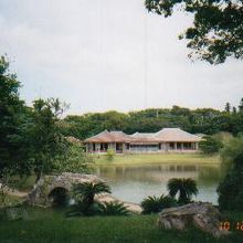 琉球王最大の別邸。国王一家の保養や中国皇帝の使者である冊封使(さっぽうし)の接待の場にも利用されていました。 1799年に造営され、その形式は池の廻りを歩きながら景色の移り変わりを楽しむことを目的とした廻遊式の庭園。池の周辺に御殿、築山、花園などを配置。池には大小のアーチ橋が架かり、池の小島には中国風の六角堂が建てられるなど中国の影響も見られますが、全体的には琉球独自のデザインです。