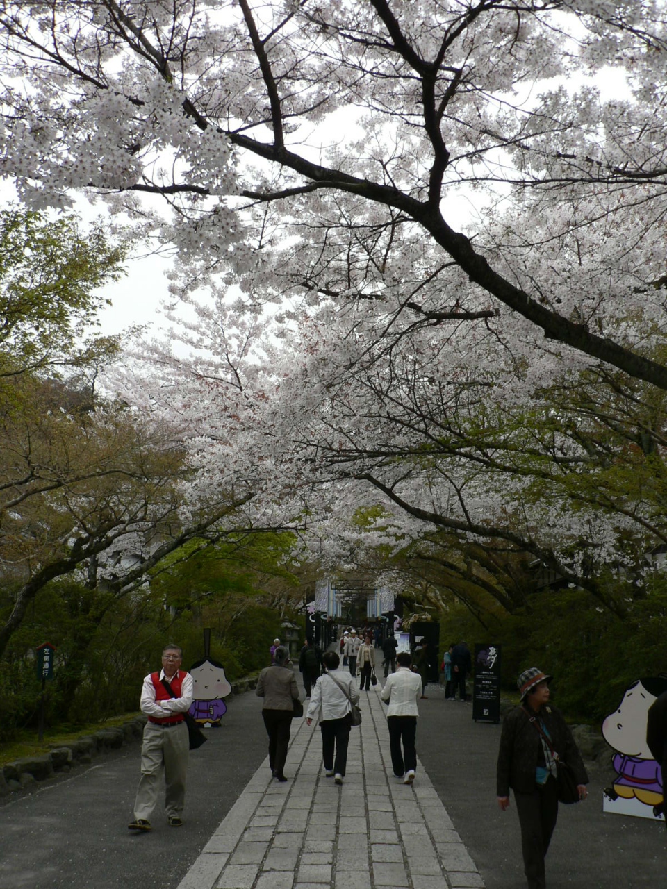 滋賀・石山寺の桜は4月9日には見ごろだったが、夕暮れになって鮮やかさが今ひとつだった。