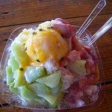 カキ氷の種類も多く、沖縄風からフルーツいっぱいのものまでどれにしようか迷ってしまいます。いつか全種類食べてみた~い!