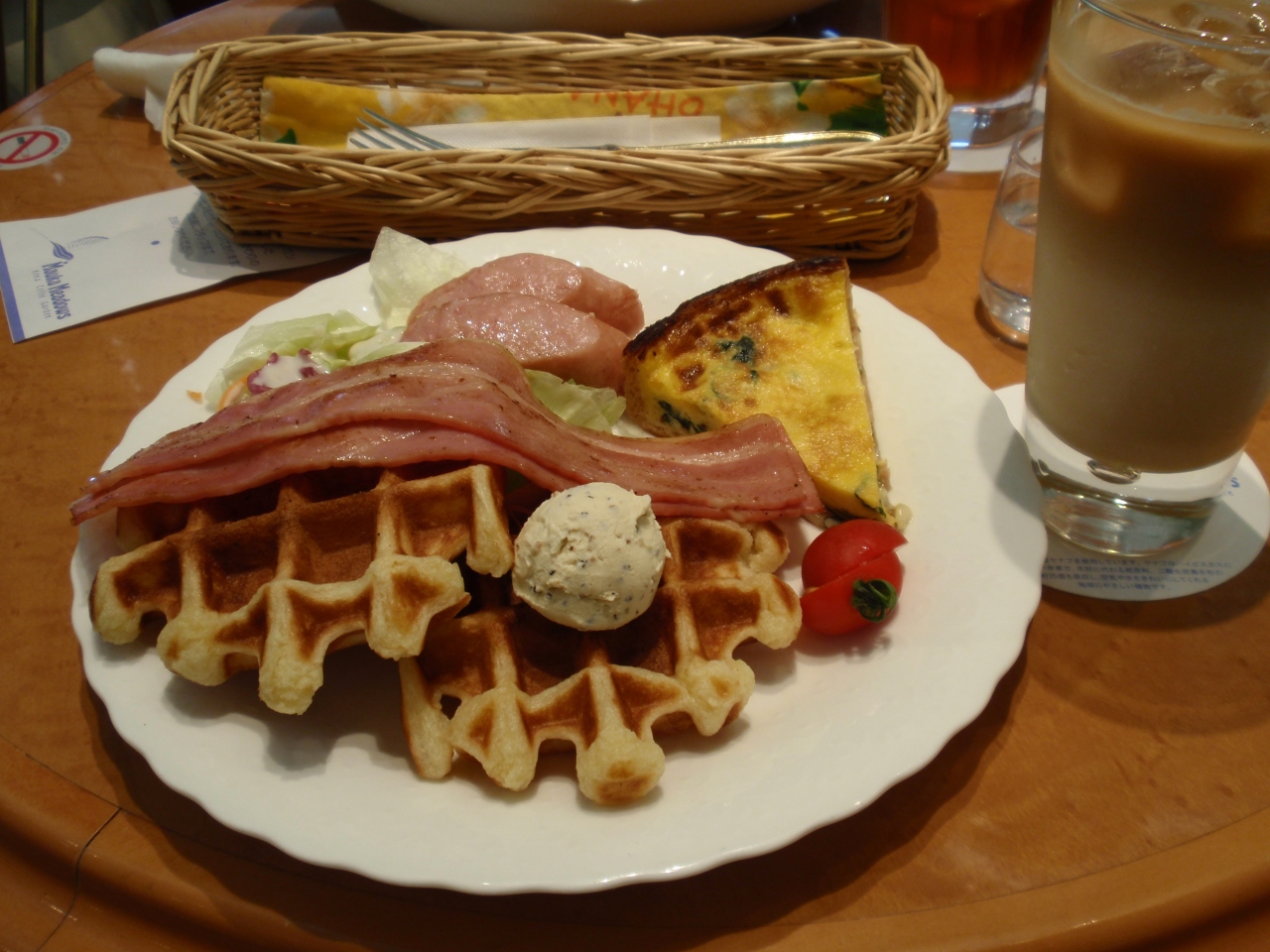 横浜ランドマークプラザの2階にあります。マウカメドウズプレートとカフェラテを注文しました。セットで1030円。ワッフル・ベーコン・ソーセージどれも美味しいです。フルーツガーデンワッフルもおすすめ。