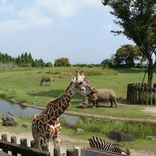 コアラが居ると聞き訪れました。園内に入ると下段に広がるキリン、サイ、シマウマなど放し飼いが見えます。今までに見た事がない雄大さです。