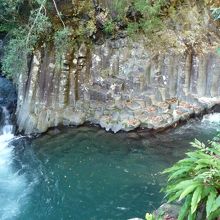 本流にかかる滝(写真右手)と支流から流れる滝(写真左手)が、1箇所で合流するのでこのように名付けられています。