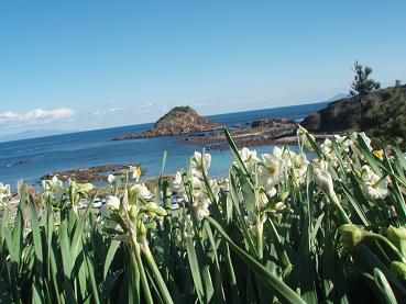 爪木崎園内には野水仙が群生していて水仙の香りがただよっていました。