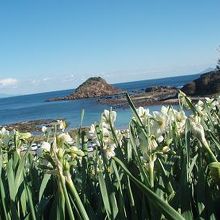 海沿いに遊歩道もあり、爪木崎灯台から伊豆七島が眺めるそうです。