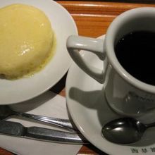 本店ではコーヒーと一緒にできたてのチーズケーキを