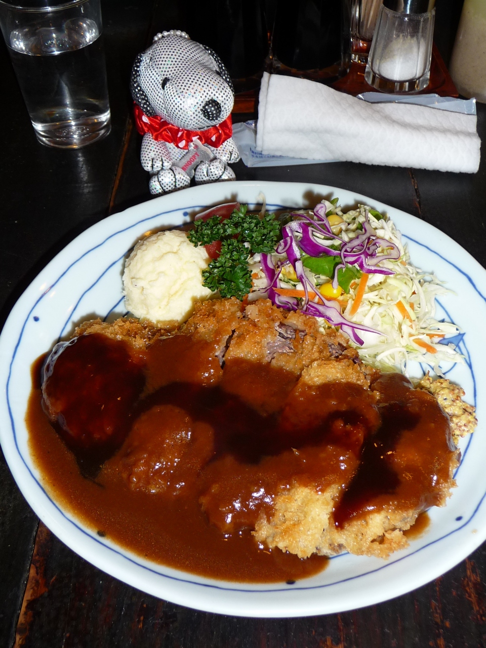 私は「ビーフカツレツセット」(写真)、wifeは「煮込みハンバーグセット」をいただきましたが、どちらも昔懐かしい味がしてウマウマでした。