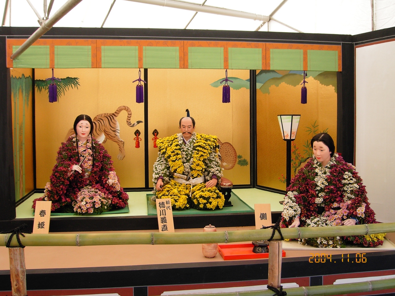 写真は、菊人形展『名古屋城絵巻』(春姫、義直、側室)2004年11月撮影