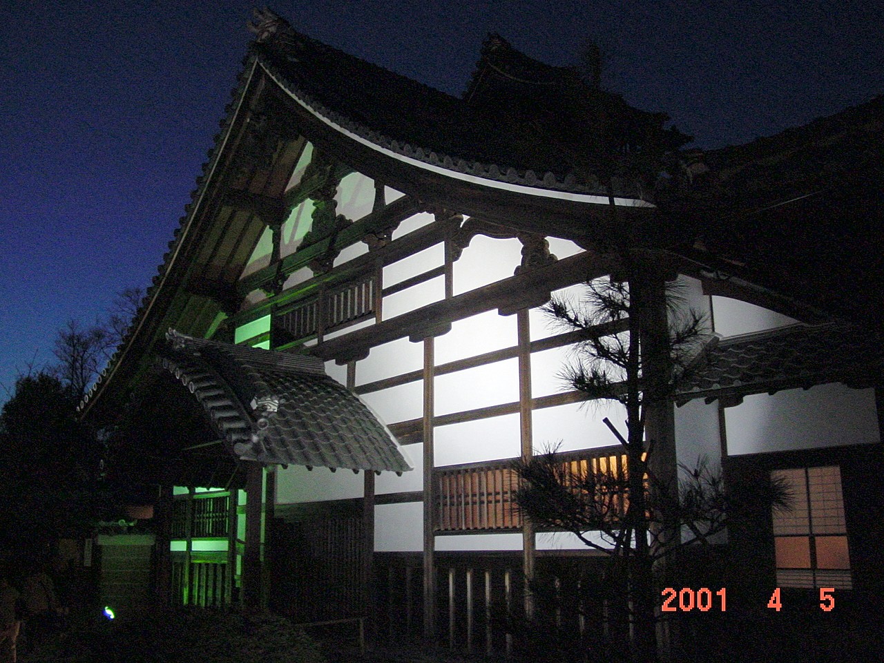 高台寺は、豊臣秀吉の妻・ねねにゆかりの寺で、春のライトアップは一見の価値があります。ライトアップされた絶景が映りこんだ偃月池は、神秘的で、方丈の庭にはモダンなオブジェがいくつも設置されていて、色鮮やかな夜景が楽しめます。
