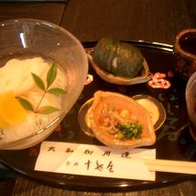 土地それぞれに習慣があります。慣習といたほうがいいでしょうか。今井では、そうめんに握り飯がついてきます。面白いですね。働き者が中心的なお客なのでしょうか。女性向きではありません。でも,おなかがいっぱいになりますので,文句はありません。