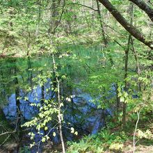 沸壺の池 575m2 水深3.1m 浅い割にきれいな池だ!青池に行ったらブナの自然林をとおってせめて沸壺の池も見学を,16池まわったが2番目にきれいだった.