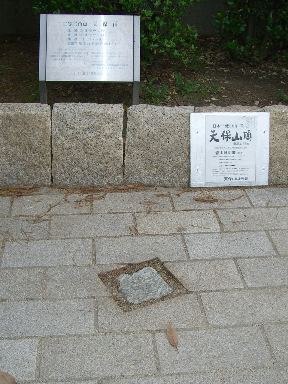 「日本一低い山」の二等三角点(山頂)のところがあります。