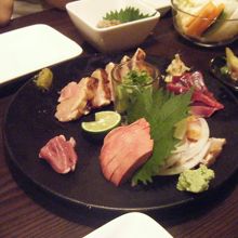 そして写真はお刺身盛り合わせ。もちろん鶏のですよ。これは美味しかったですよ~!新鮮で歯ごたえもGood!