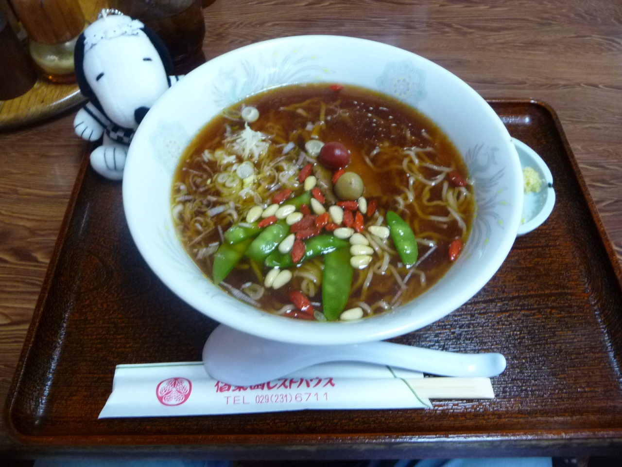 しょうゆベースのスープに松の実やクコの実が入っています。しょうゆ味が私にはちょっと濃かったように感じました。