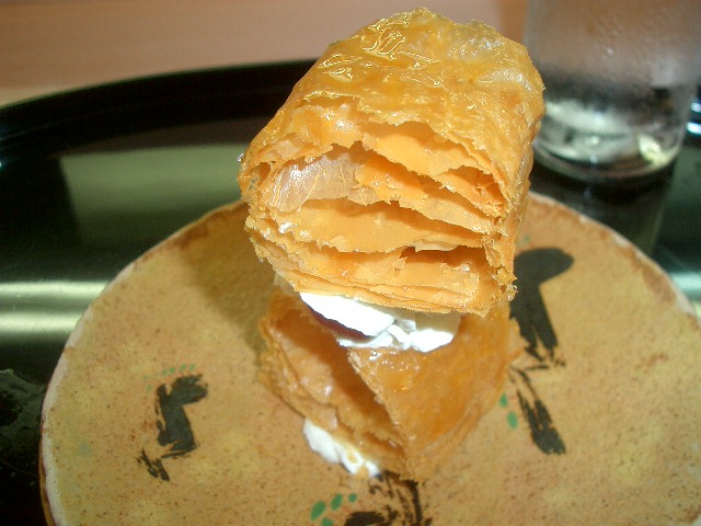 八坂の塔の下。味は少し濃い目ですが、申し分のない料理です。デザートが数種類から選べるのですが、「全部!」とコールしてもいいので、女性に大人気です。