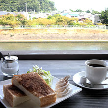 ちょっと寝坊して、モーニングをいただきにでかけました。みなさんの書き込み通り、川の目の前にある、かわいらしいカフェでした。かわいいと言えば、こちらのお母さん(?)も、控えめでかわいらしい素敵な方でしたよ!