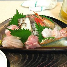 さしみは全部天然もの.沼津で仕入れてくると.くろむつ,あおだい,おもだい,てながえび,ぼたんえび,たこ みなおいしい!! きんめだい,かさごの煮付け,しめさば,エビの汁,つけもの,ごはんのこんだて.一杯飲み屋の門がまえだが,味は最高!