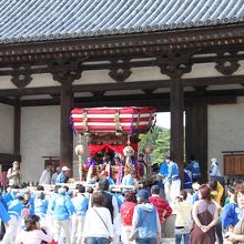 2009年10月10日に沢山の太鼓台に守られて、斑鳩神社のお神輿が法隆寺の御旅所に移動していました。