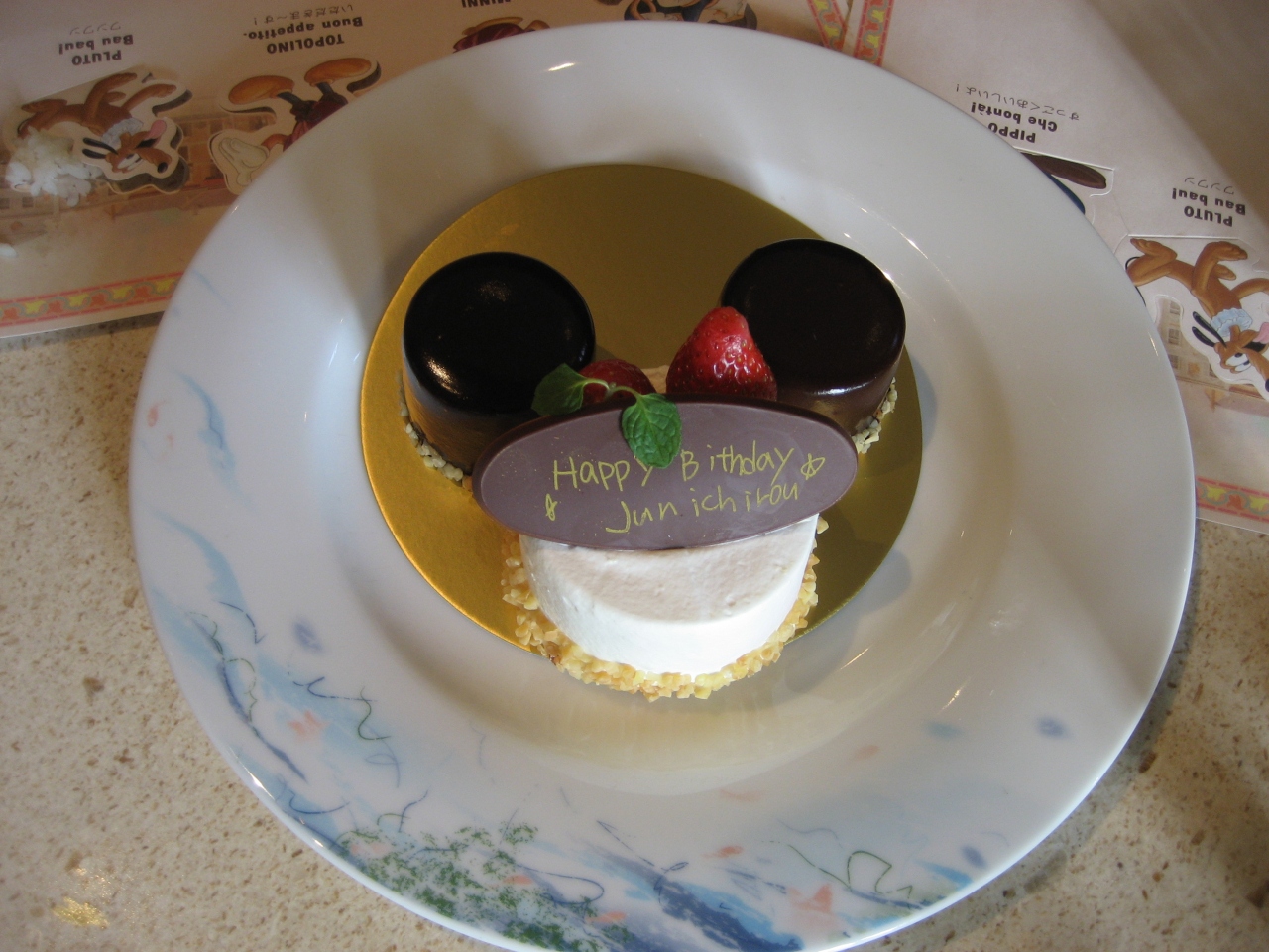 子供の誕生会で予約を入れるとでミッキーのケーキに名前を入れてくれます。