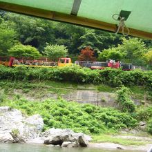 エンジンなど付いていない昔ながらの船を船頭さんが操り、渓谷美を堪能しながら川を下ります。