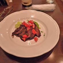 コートデュローヌの赤ワインのハーフ1800円.高知産温野菜のサラダ850円,ミニベジタブルサラダ450円, 宿毛産タビエビのオイル焼き600円,黒毛和牛もも肉のタリアータ,バルサミコソース 1500円,トマトソーススパゲティをハーフで作ってもらった.600円,アルデンテでとてもおいしかった.しめて5800円と高かったが,スパゲティはリーズナブルでおいしい.値段を見つつ注文すれば,安く住むだろう.本格的なイタリア料理でおすすめできる.まさか高知中村でおいしいイタリア料理をたべられるとはおもわなかった.