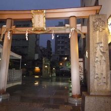 境内には、本殿・水宮・金刀比羅宮・玉津稲荷等の摂社があり、「曽根崎心中」の主人公である、お初&徳兵衛の像もあります。