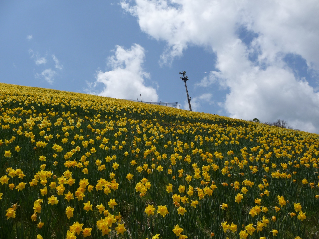 びわ湖バレイの山頂付近では、5月中旬頃に4種類30万球のスイセンが咲きます。
