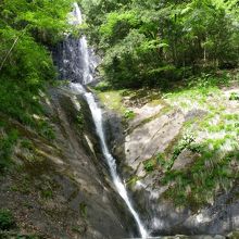 二段になった総落差60mの段瀑で、上段は分岐瀑、下段は直瀑という姿をしています。