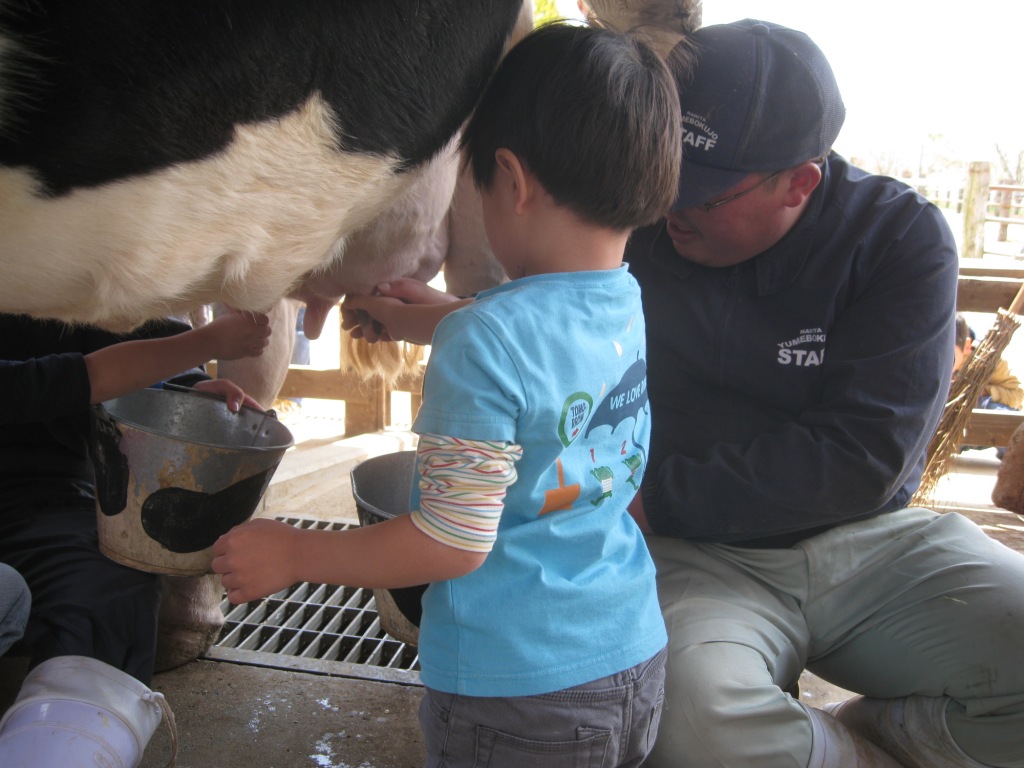 ハイジが大好きな息子はウシの乳搾りができて喜んでました。