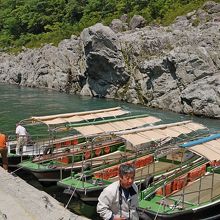 遊覧船は流れの緩やかなところを20分強で往復.とんびにパンの餌付けをするパフォーマンスもあったが,流れも緩やかで静かな,大歩危峡の遊覧.そうたいしたことはないが,岩はやはり美しく,上を走る土讃線も壮観で,1050円の価値はあると思う.