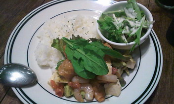 一応ココって、ハンバーガーとタコライスの専門店と銘打ってあるのですが、ランチ時にはごはんものも出すようになったらしいです。