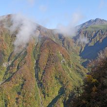 鳥海山,鉾立展望台の奈曽渓谷展望台からの鳥海山,稲倉岳,奈曽渓谷の眺めと落差には圧倒される.こんな急な渓谷あまりみたことはない,最高の絶景,10/11頃,紅葉は最高だった!