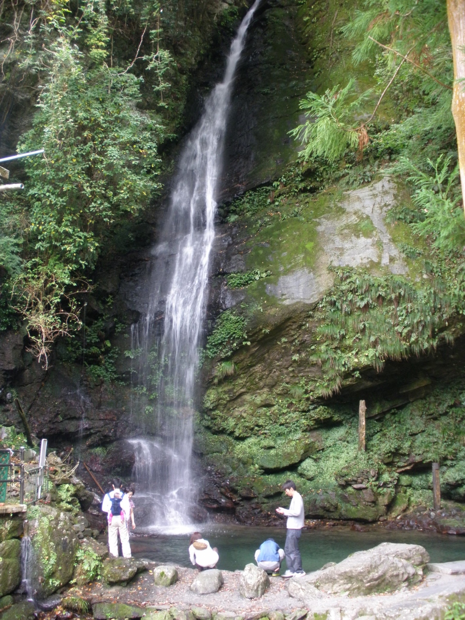 落差約50メートルほどでしょうか。滝つぼの水は澄みきり、マイナスイオンを浴びて、心休まる気がします。