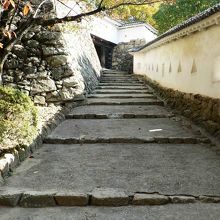 門と門の間には「トリック塀」もあり、敵兵が「はの門」を突破して天守閣を目指して進軍すると塀が右側に曲がっており塀添いに進むと塀の先は崖になって敵が崖から落ちる仕掛けになっている。