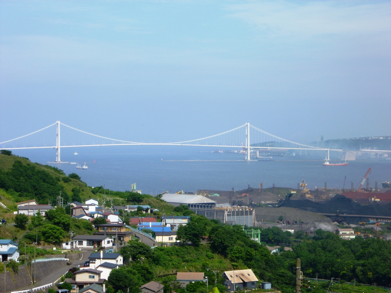 写真は、意外と穴場なトッカリショから見た白鳥大橋です。