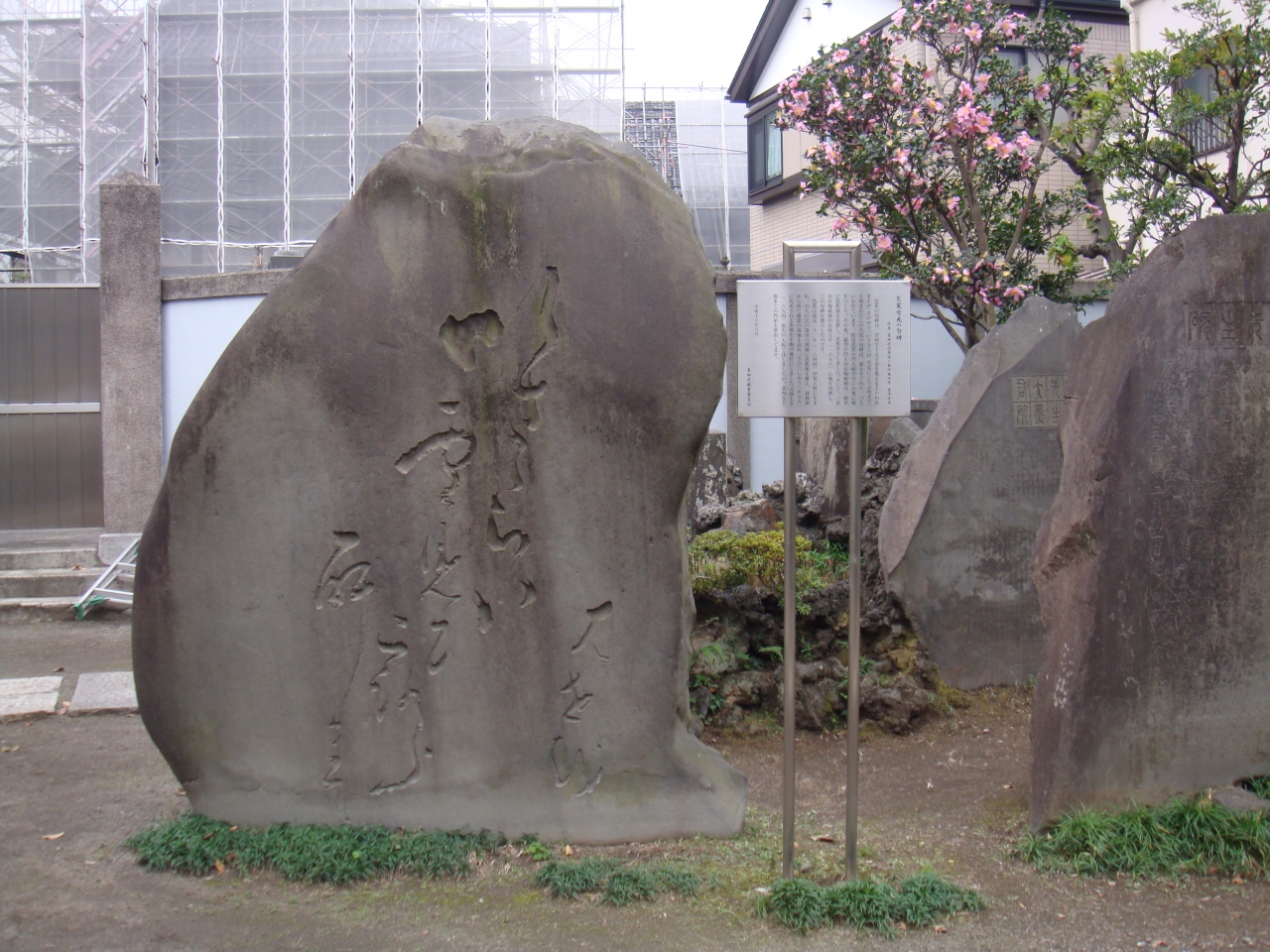 寺名の由来は三代将軍家光が鷹狩りの折り腹痛を起こしたが、ここの井戸水を飲んでおさまったということです。多くの句碑が立てられていますが、芭蕉の雪見の句「いざさらば雪見にころぶところまで」という句碑は全国に多くある芭蕉の句碑の中でも最も優れたものの一つという説明書きがありました。(写真)