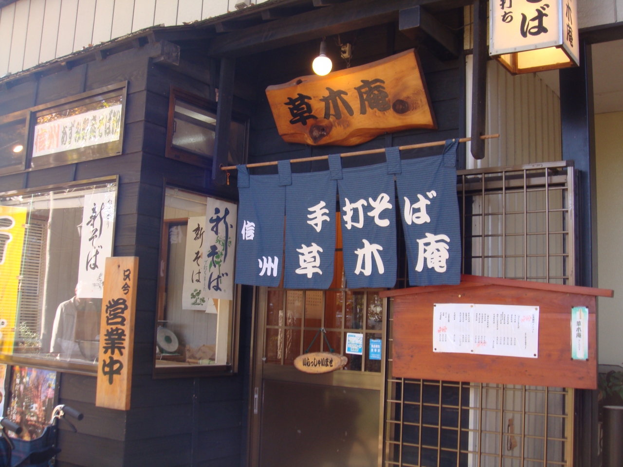 この草木庵というお蕎麦屋さんは、JR北小金井駅からまっすぐ本土寺まで歩く途中の左側にあります。本土寺はアジサイ、花菖蒲、紅葉が美しく、そのシーズンには多くの人が訪れます。