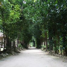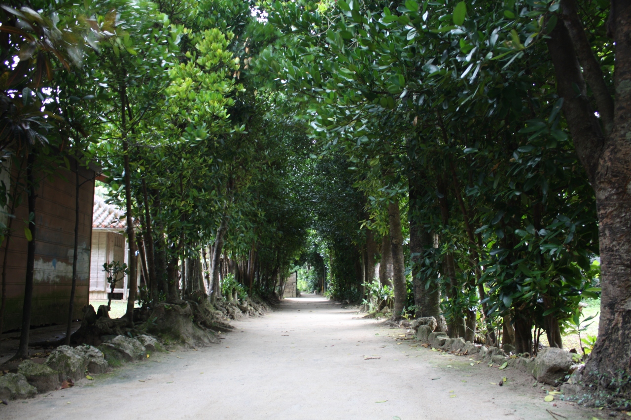 いきなり目に飛び込んできたのは、うっそうとしたフクギに覆われ奥へと続く小道。